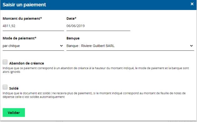 Soldési besoinPermet de clore la note de dépense ou la facture d'achat. Plus d'autres paiements même si le montant payé est différent du montant total.
